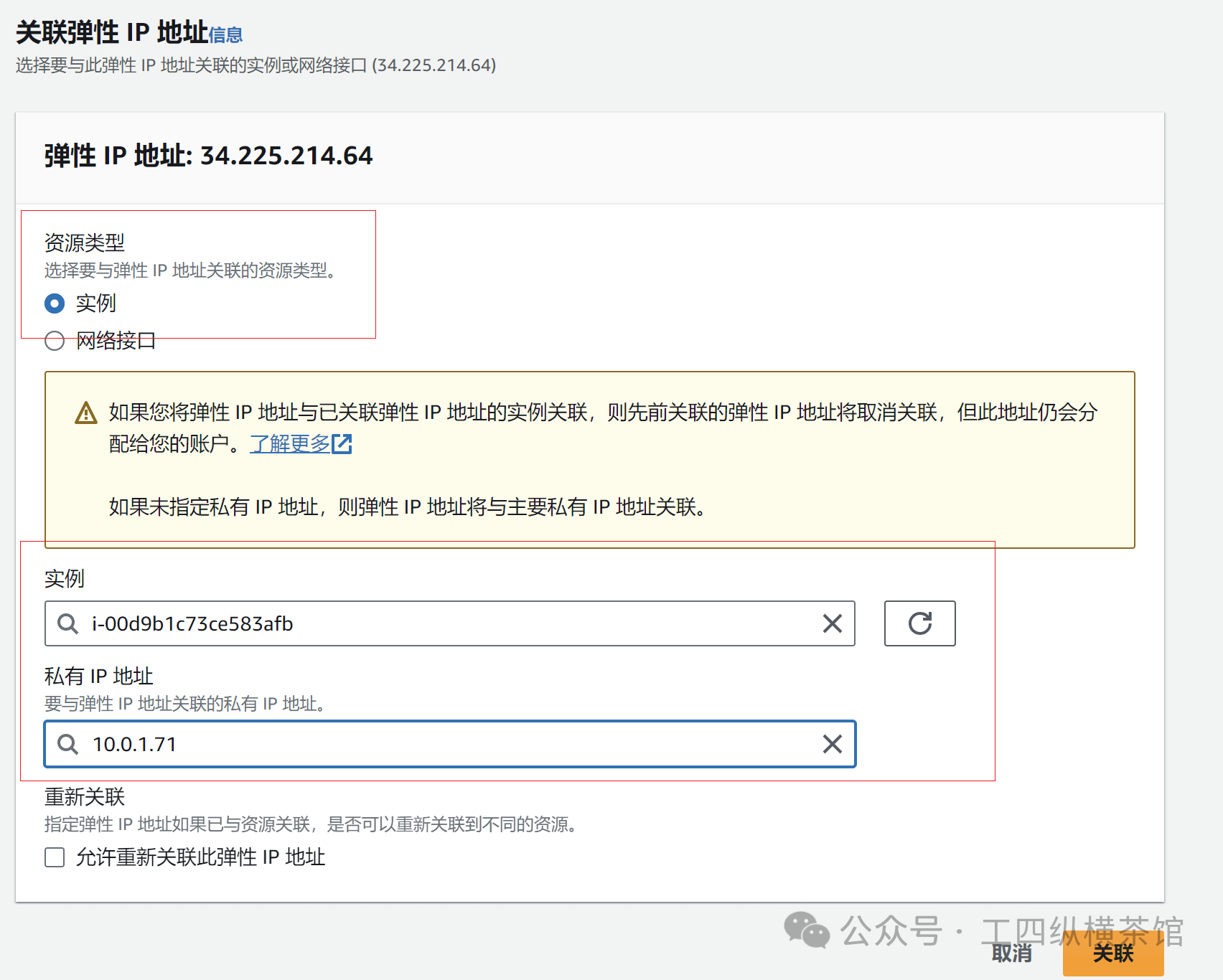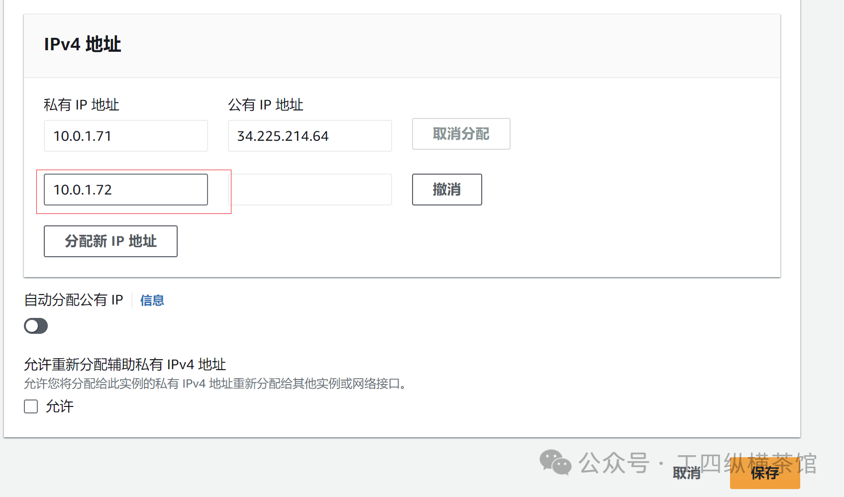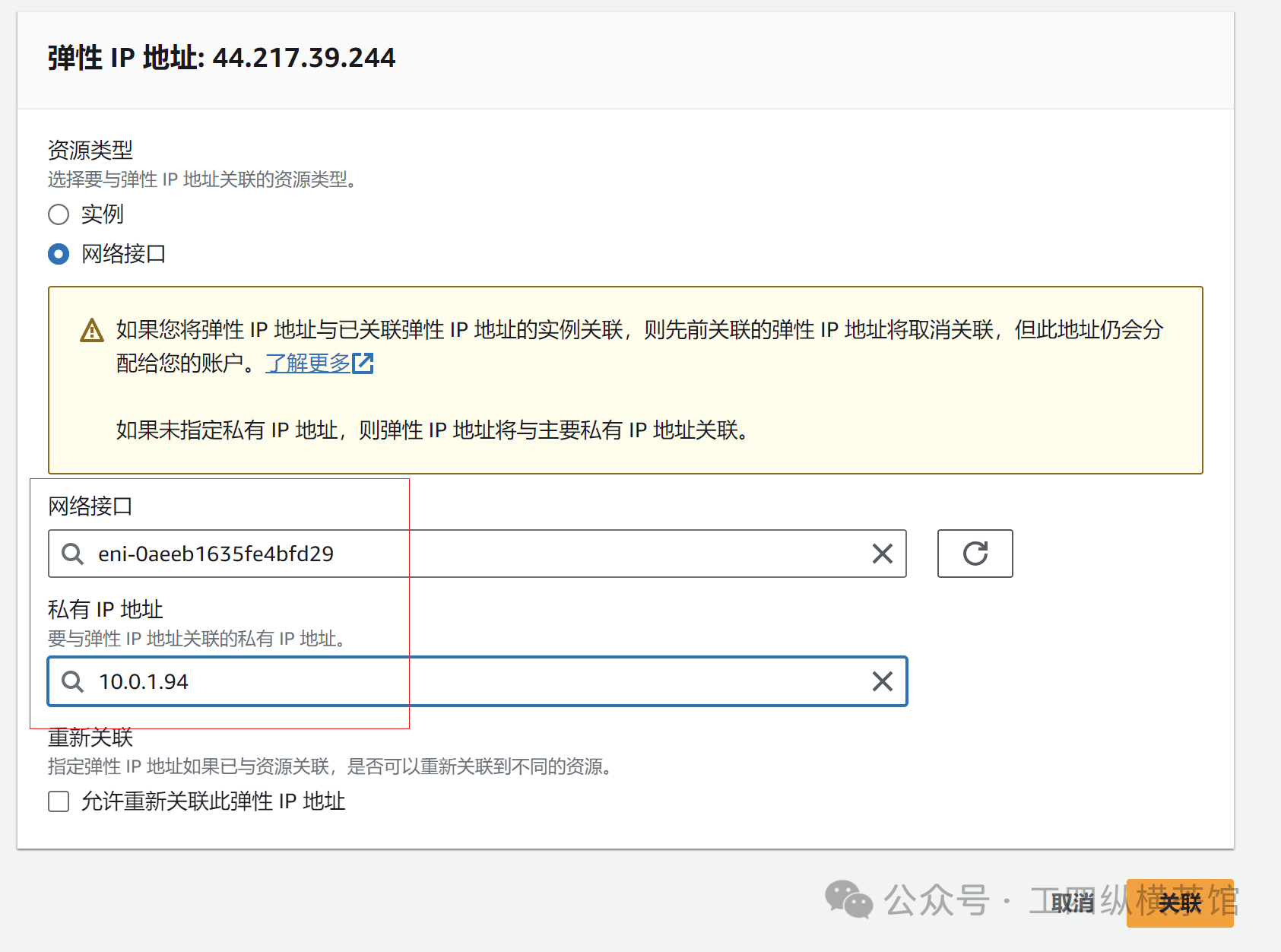 AWS EC2:一张网卡,一个私有IP,绑定一个EIP