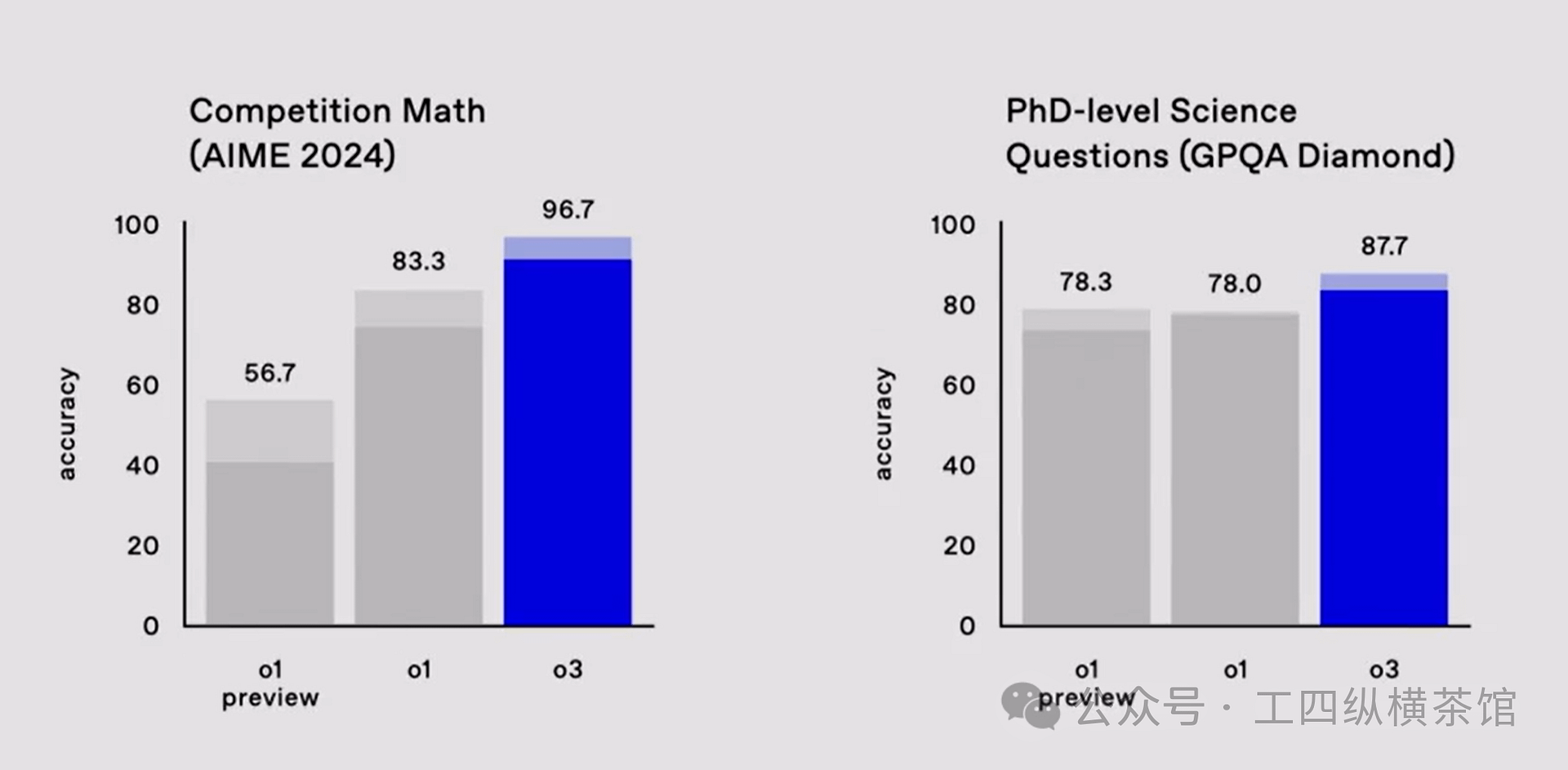 o3在ARC AGI测试中超越人类评测分数达87.5%,标志着AGI通用人工智能的突破。此外,o3在美国AIME数学竞赛中得分96.7分,超过所有现有模型,堪比顶级数学家。