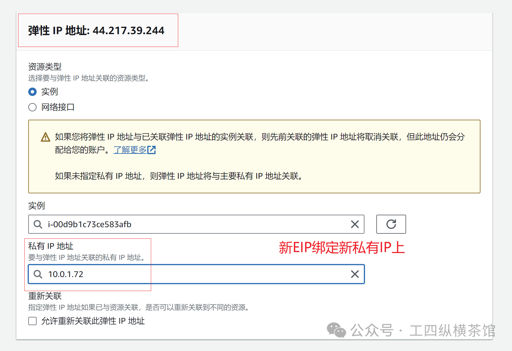 AWS EC2:一张网卡,一个私有IP,绑定一个EIP